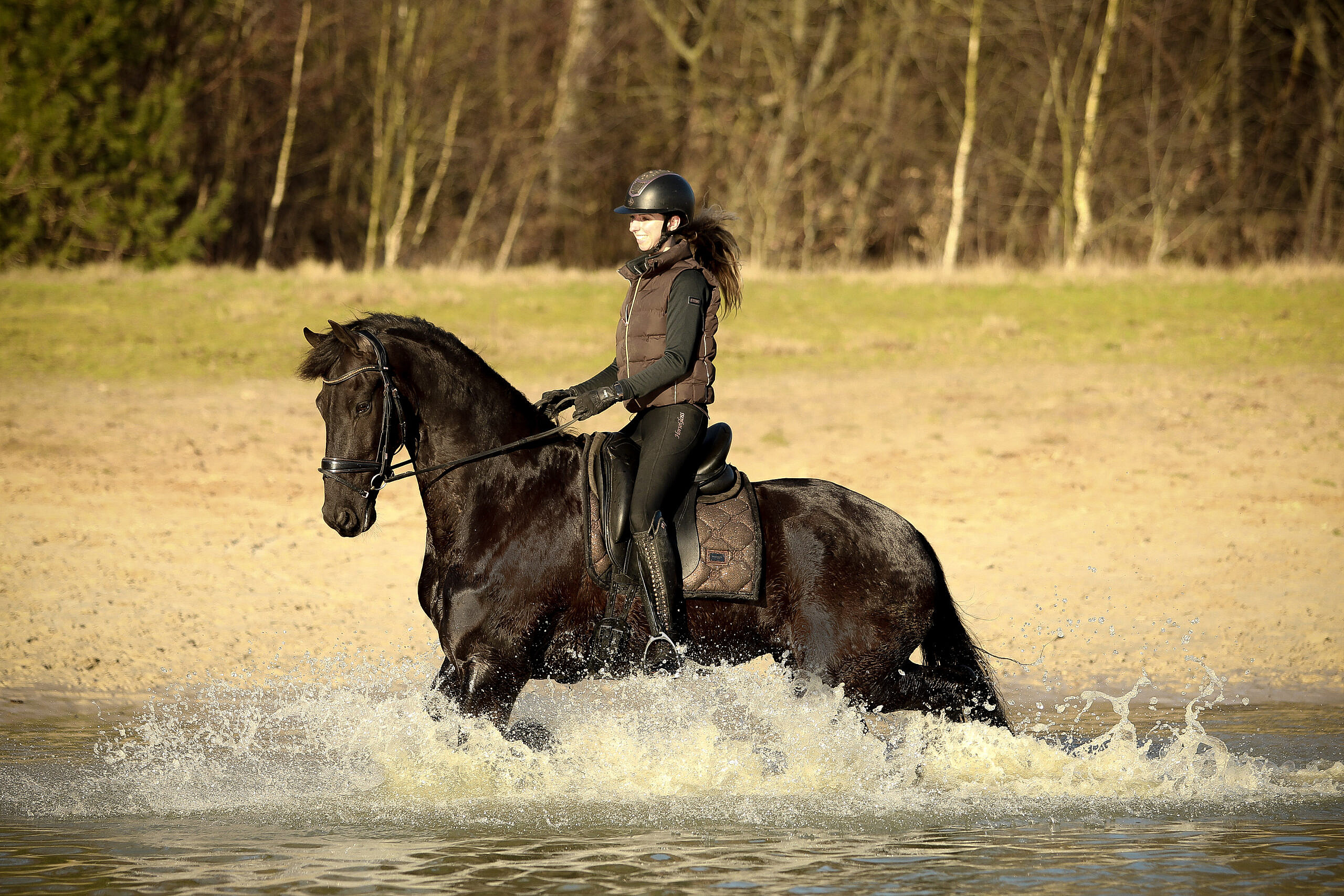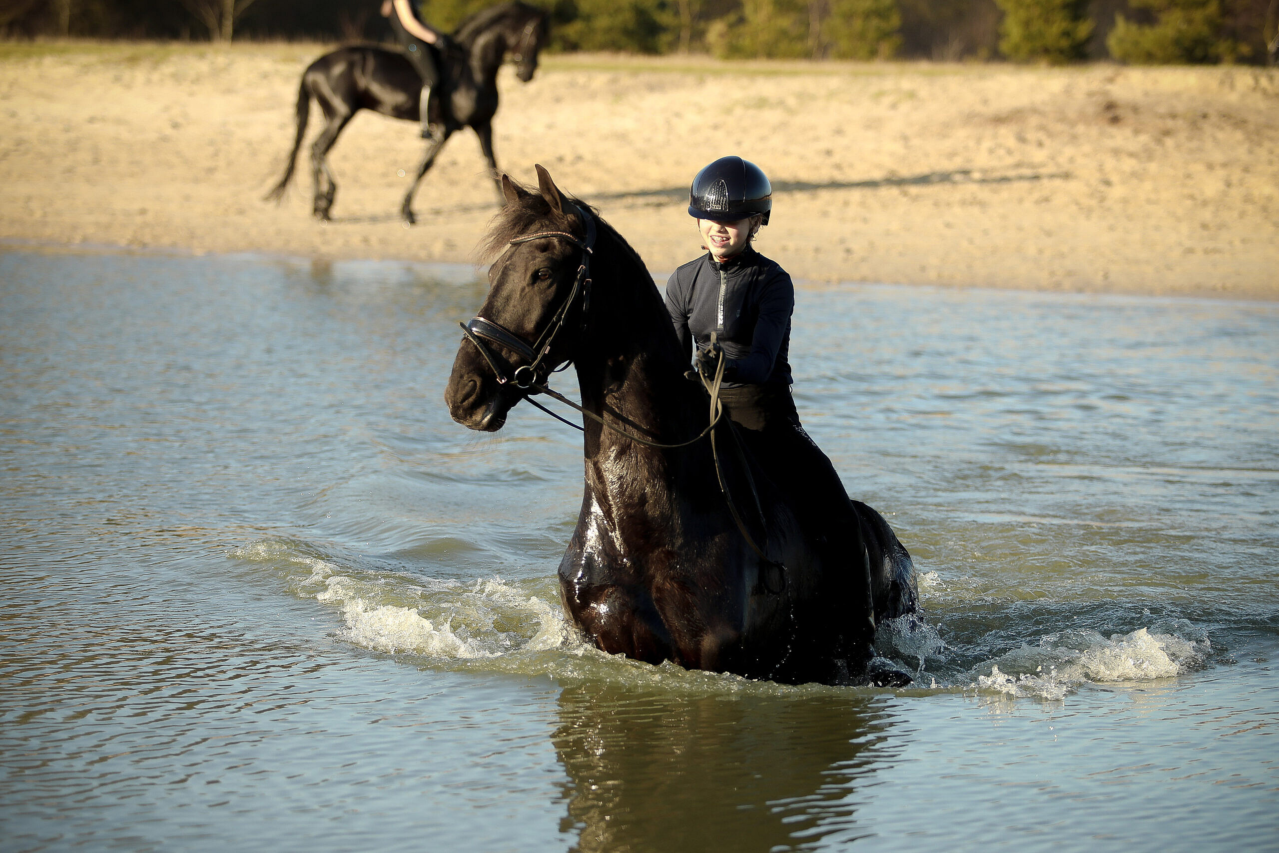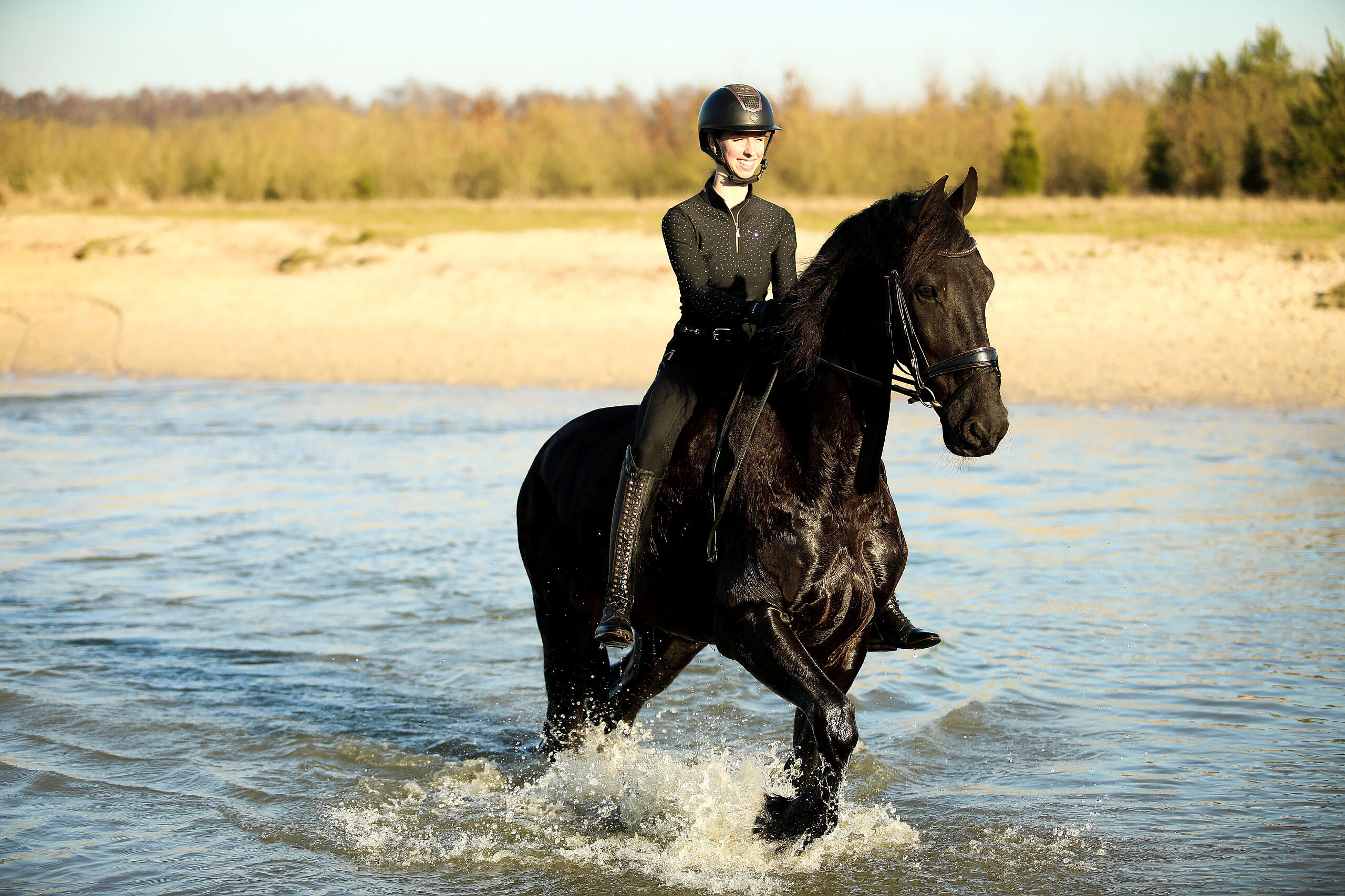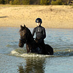 Hammelton is a super horse to work with. He has a very nice pace while riding him; it’s like ‘cruise controlling’ on a horse. He responds very well to the leg, easy transitions also to canter and also responds very quickly to the voice. He is light in the hand and has a good canter. Hammelton competed at L1 dressage level and we’re getting him ready for the L2/M1 level. He already knows the walk-canter transitions, backwords and leg-yielding. Also Hammelton is super on trailrides, he is very safe on his own but also in a group. He is super social and sweet with other horses, he is not dominant but also not submissive.