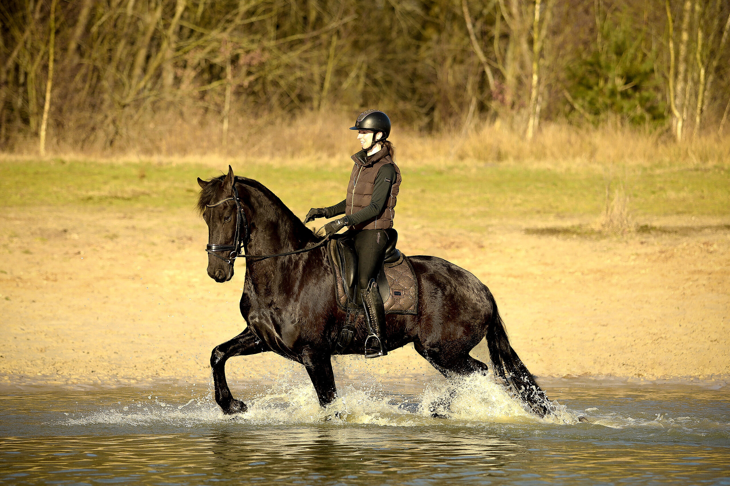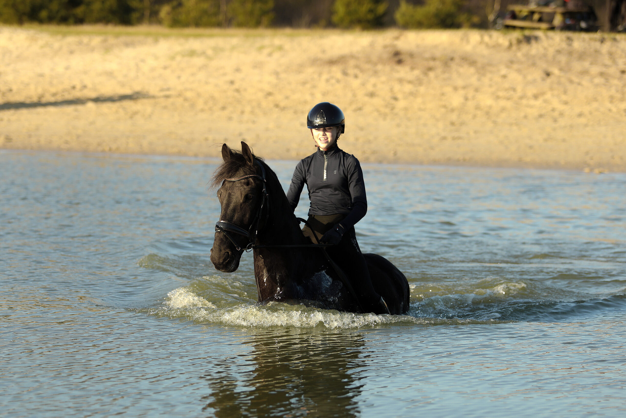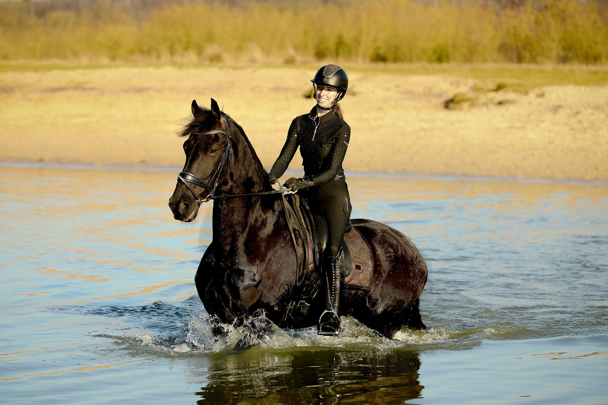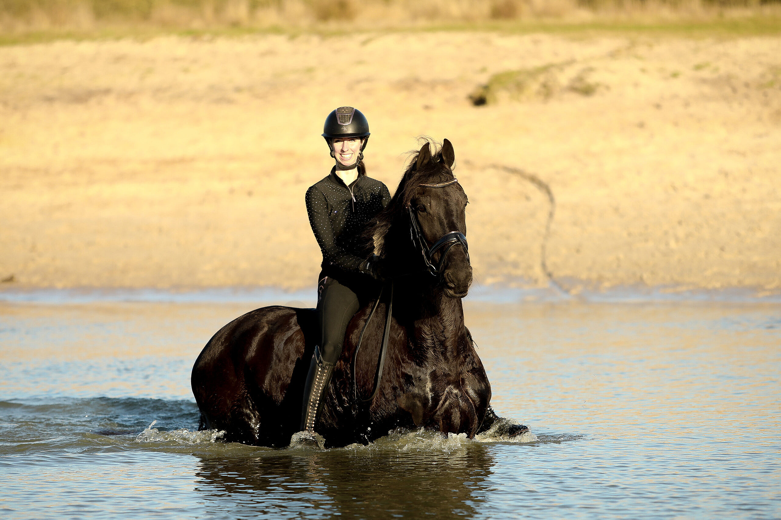 Hammelton is a super horse to work with. He has a very nice pace while riding him; it’s like ‘cruise controlling’ on a horse. He responds very well to the leg, easy transitions also to canter and also responds very quickly to the voice. He is light in the hand and has a good canter. Hammelton competed at L1 dressage level and we’re getting him ready for the L2/M1 level. He already knows the walk-canter transitions, backwords and leg-yielding. Also Hammelton is super on trailrides, he is very safe on his own but also in a group. He is super social and sweet with other horses, he is not dominant but also not submissive.