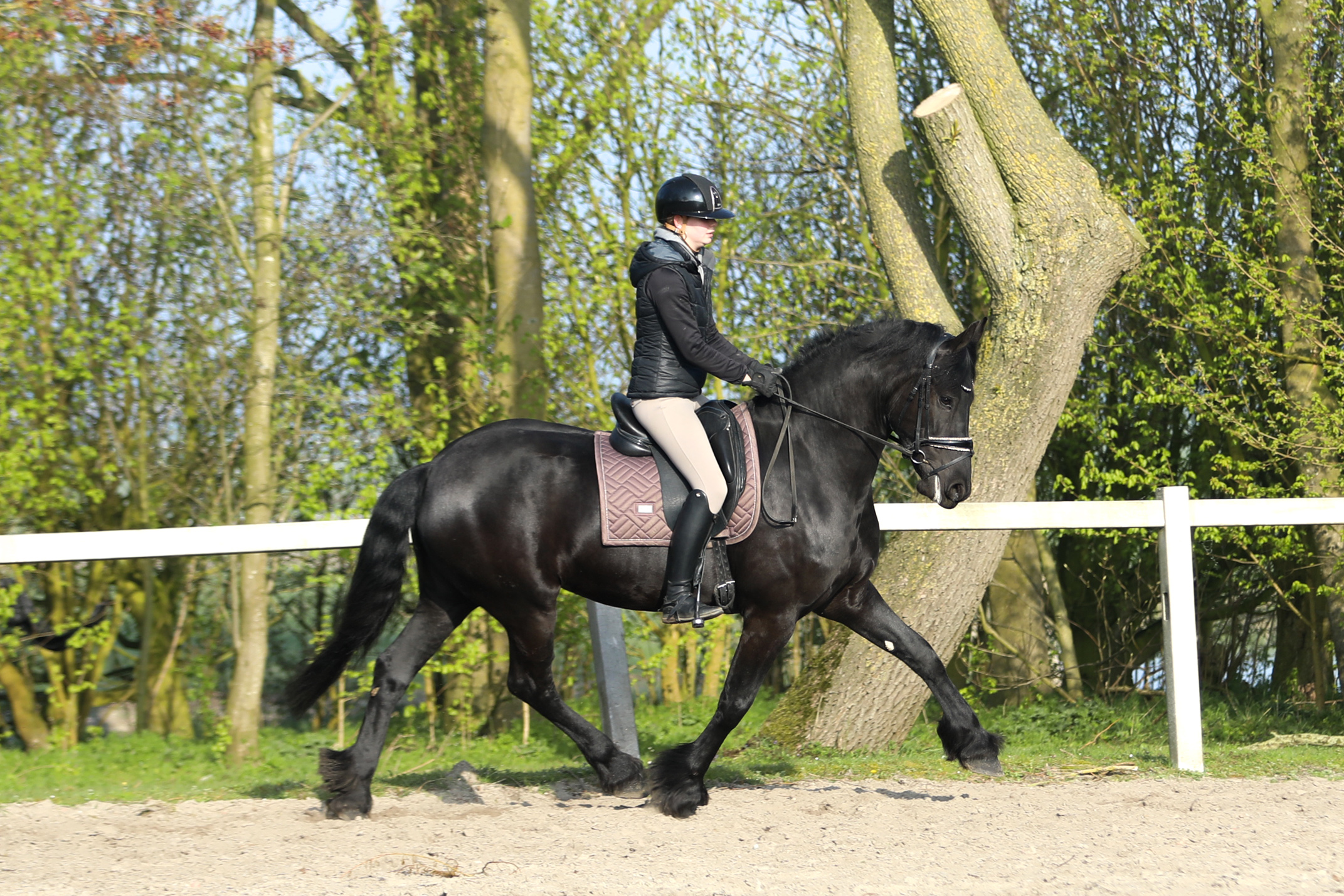 Sientje is a very good mover. She is very supple in the trot and with a good hindleg. We ride Sientje under the saddle anf for carriage in single and double. She is safe in traffic and a very appealing horse to see in the work. She wants to work, is nice and forward and light in the hand. Sientje is a good sporthorse who also has a reliable character!