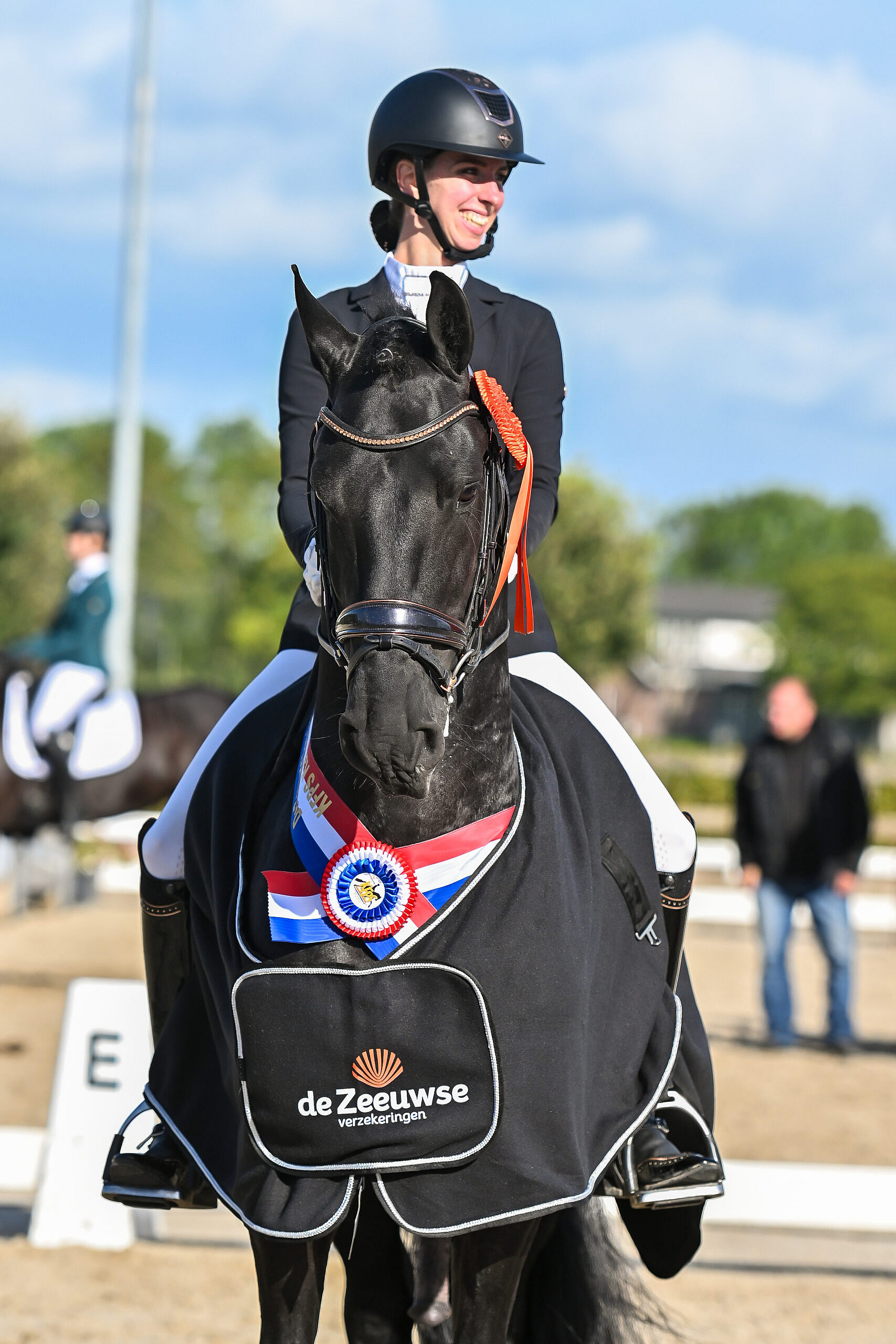 Dit paard heeft het werkelijk allemaal! Een top karakter, fantastisch bewegen en super aanleg voor de sport. Jan heeft zijn sportpredicaat in zowel de dressuur, als in de tuigsport behaald en heeft al vele titels op zijn naam geschreven! Op dit moment wordt hij uitgebracht in de Z1 dressuur door Rianne Okkema en zijn we bezig met de vliegende wissels. Jan laat zeer veel talent zien voor het hogere werk en zit nog lang niet aan zijn max! Hij is op vreemd terrein super braaf en betrouwbaar.