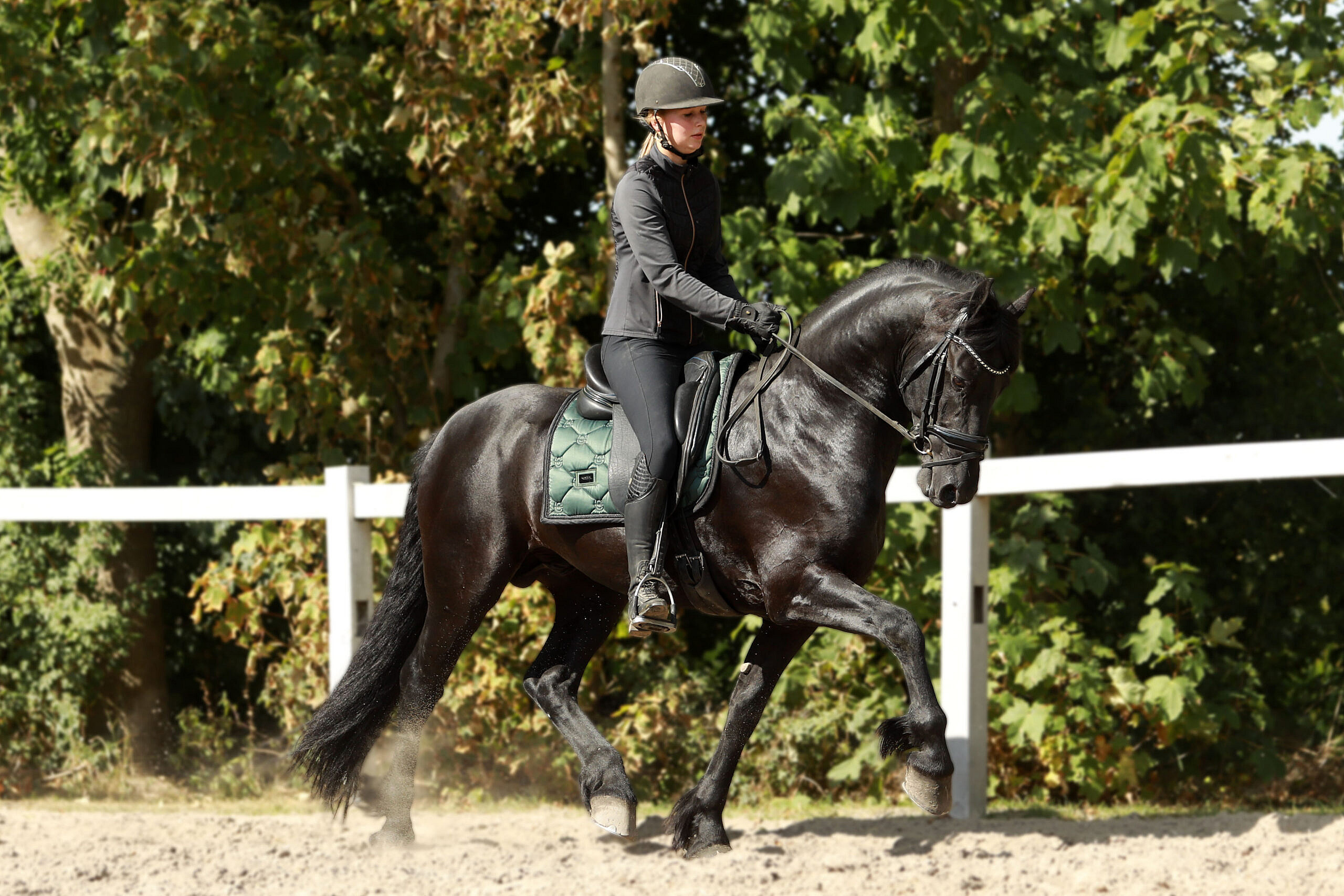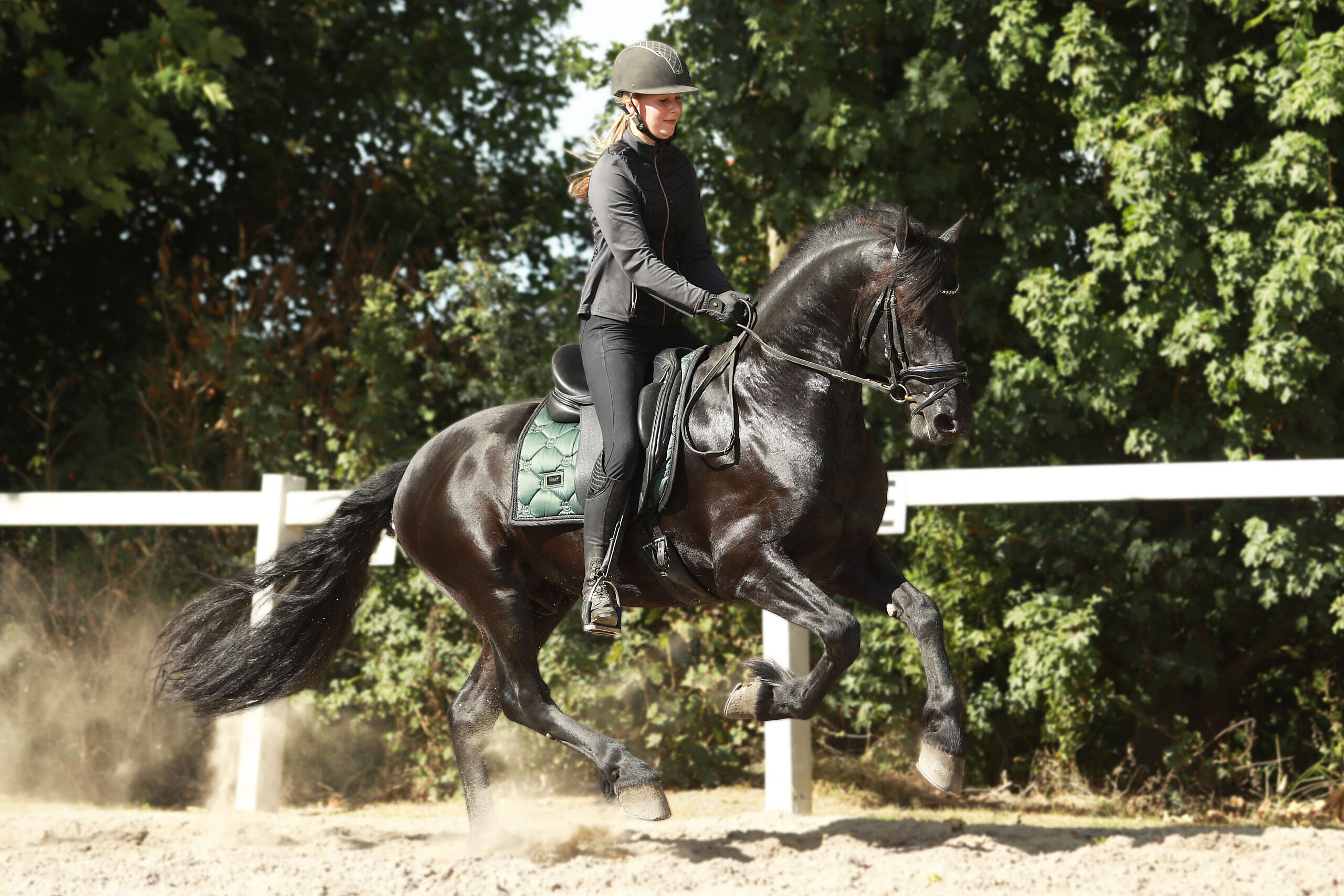 Jeldert is beleerd voor de kar en onder het zadel. Hij is oplettend, heeft drie goede gangen en heeft een fijne aanleuning.