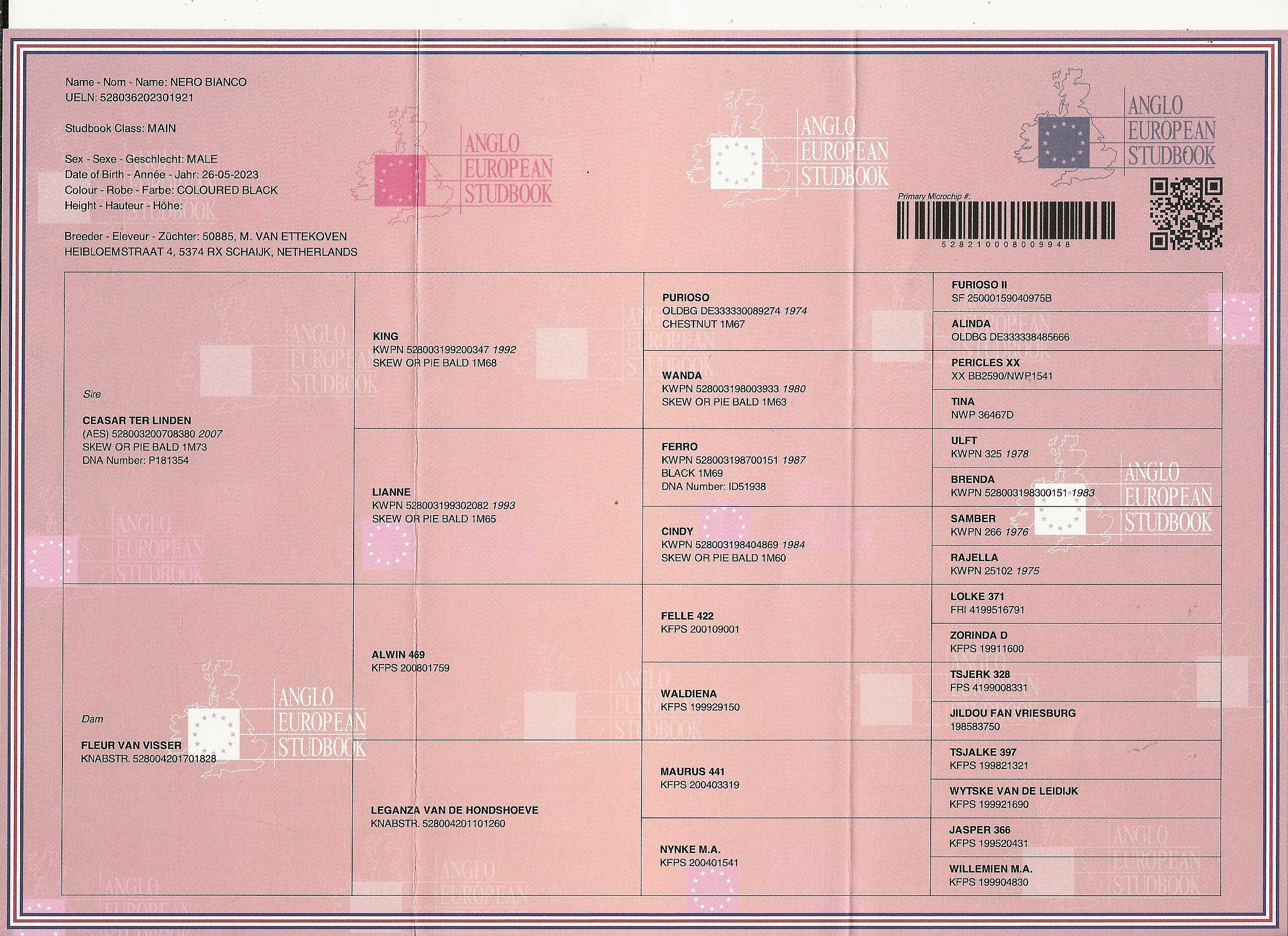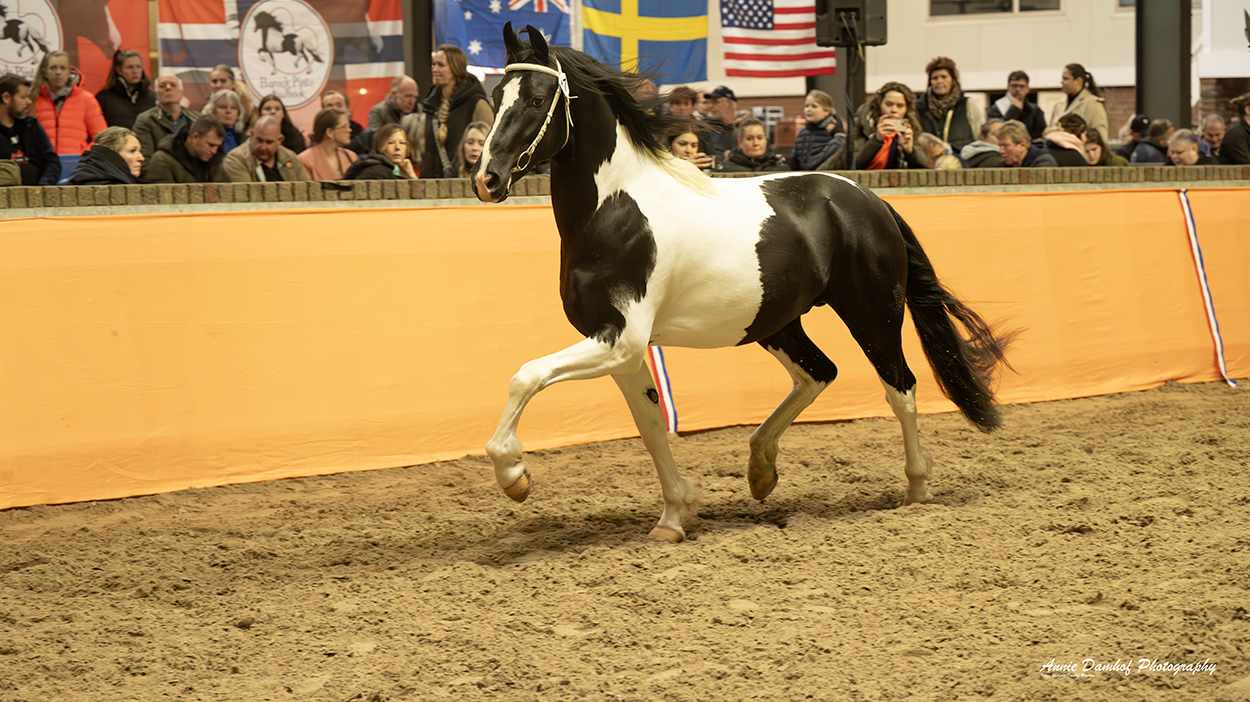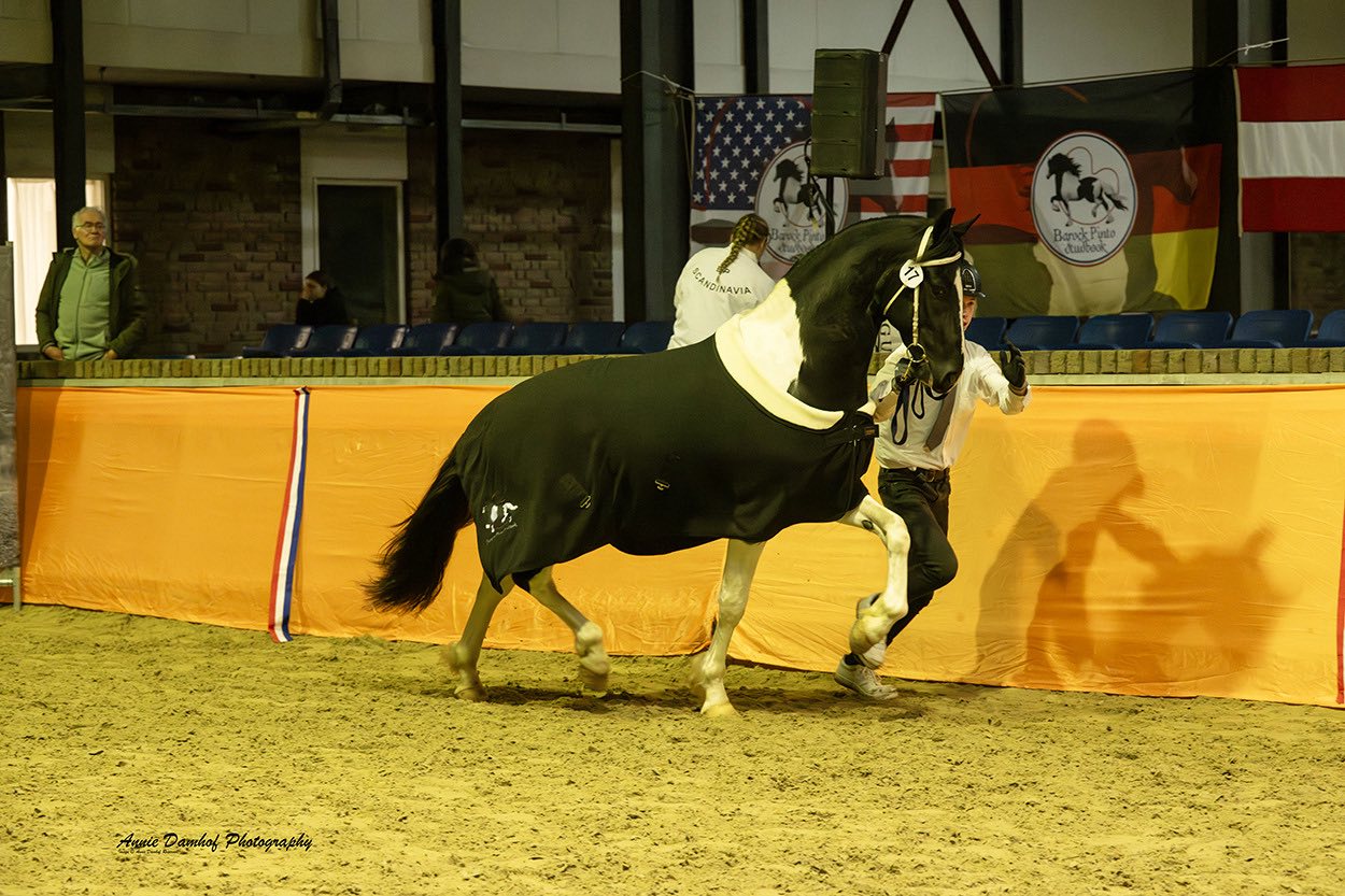 Nico is een hele luxe, jeugdige hengst met een fraaie uitstraling. Hij is een nakomeling van Ceasar ter Linden uit een Alwin 469 moeder. Deze Fleur heeft een mooi vol papier waar ook veel sportbloed in voorkomt! Nico is in 2026 goedgekeurd bij het Barock Pinto stamboek met lovend commentaar! Hij werd Jeugdkampioen en later ook verkozen tot algemeen Reserve Kampioen!