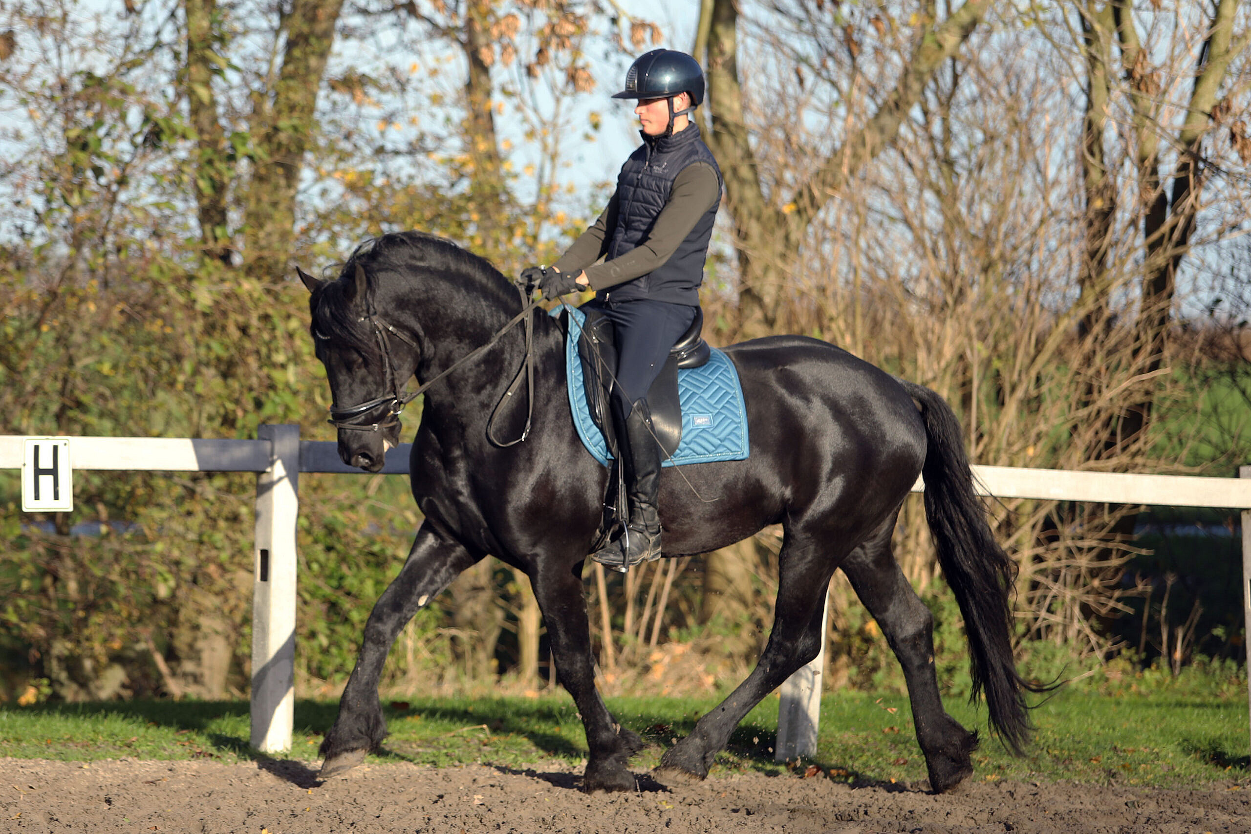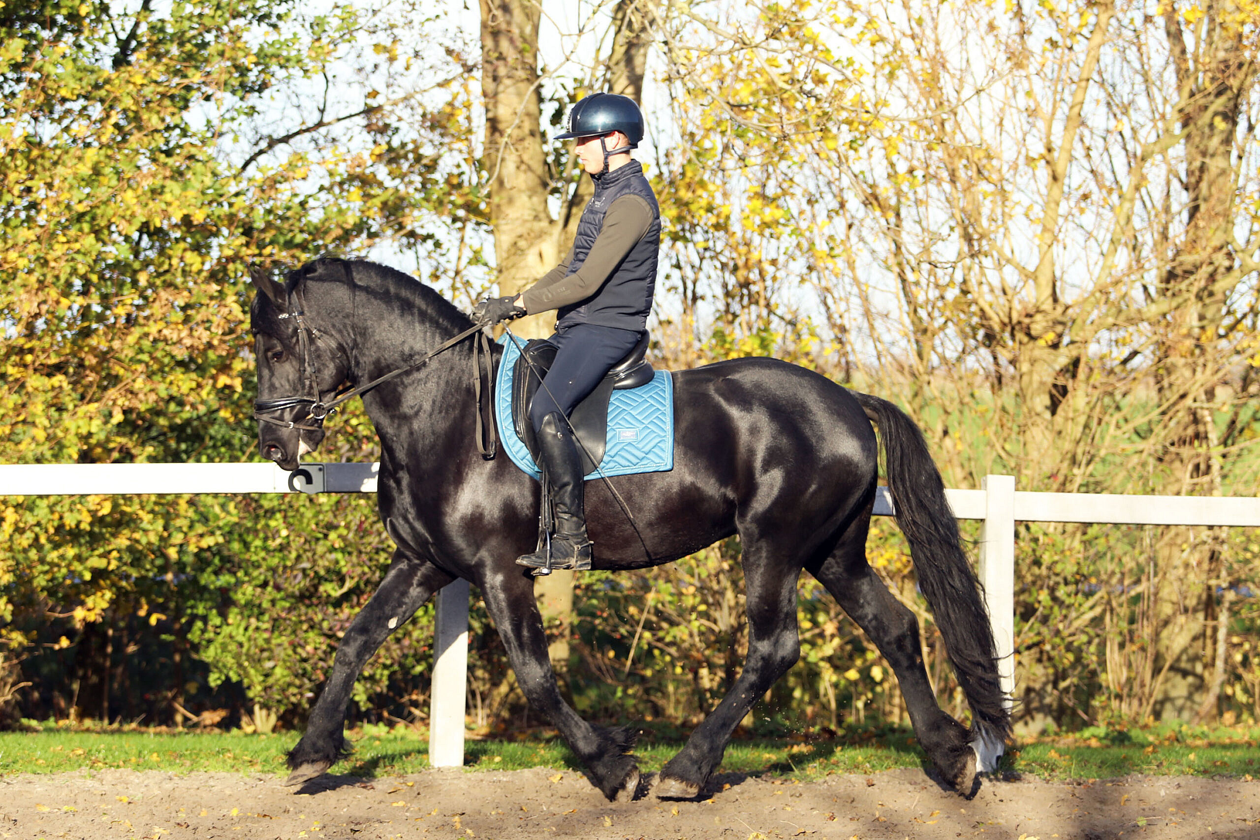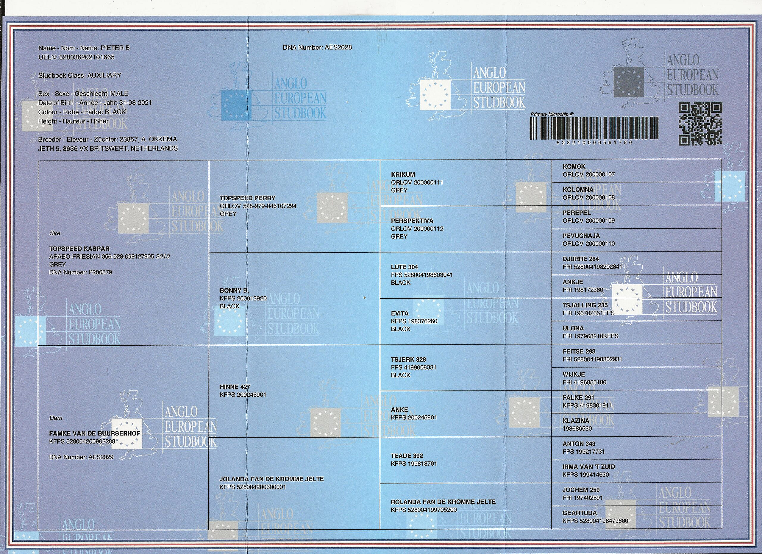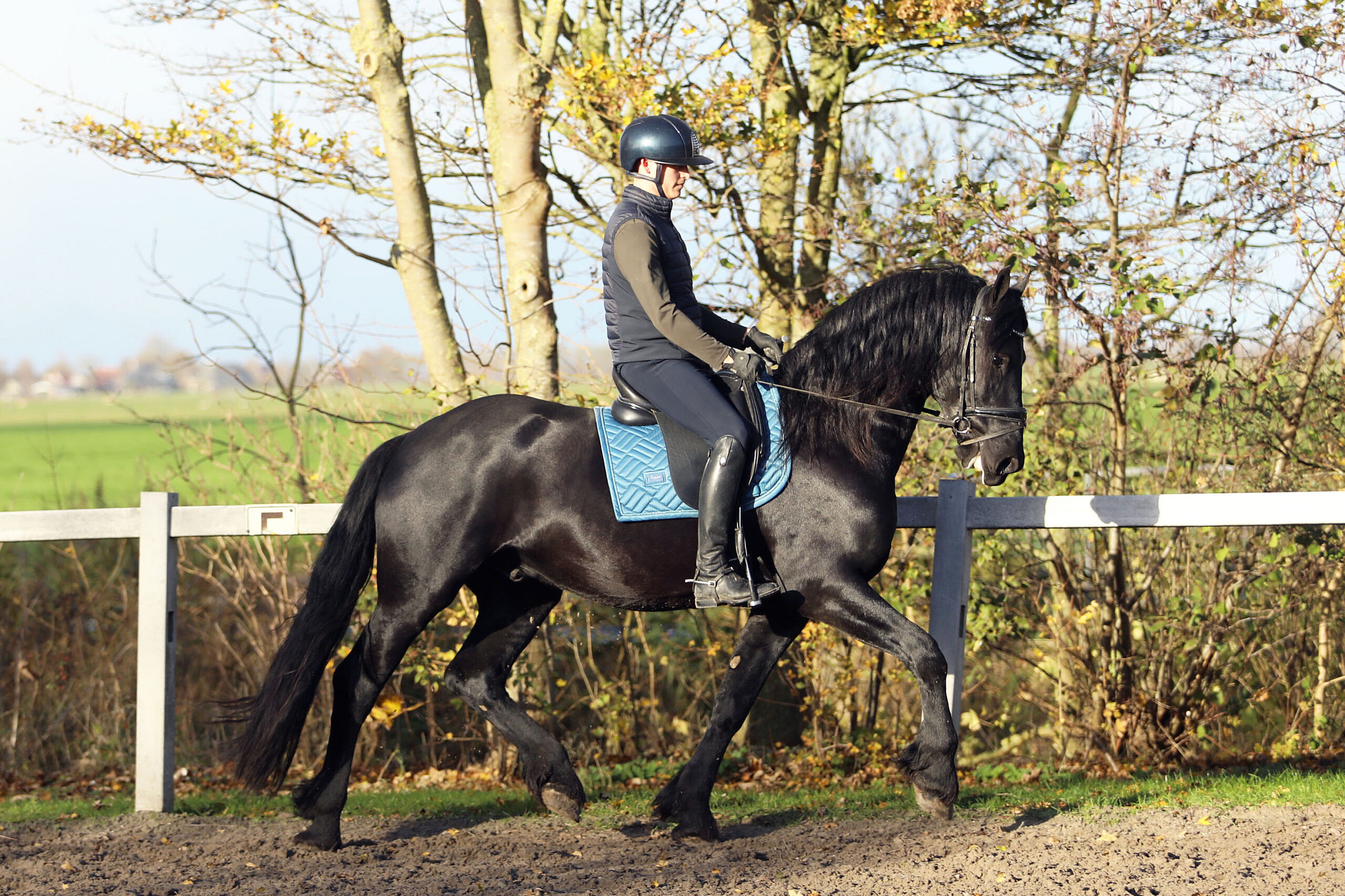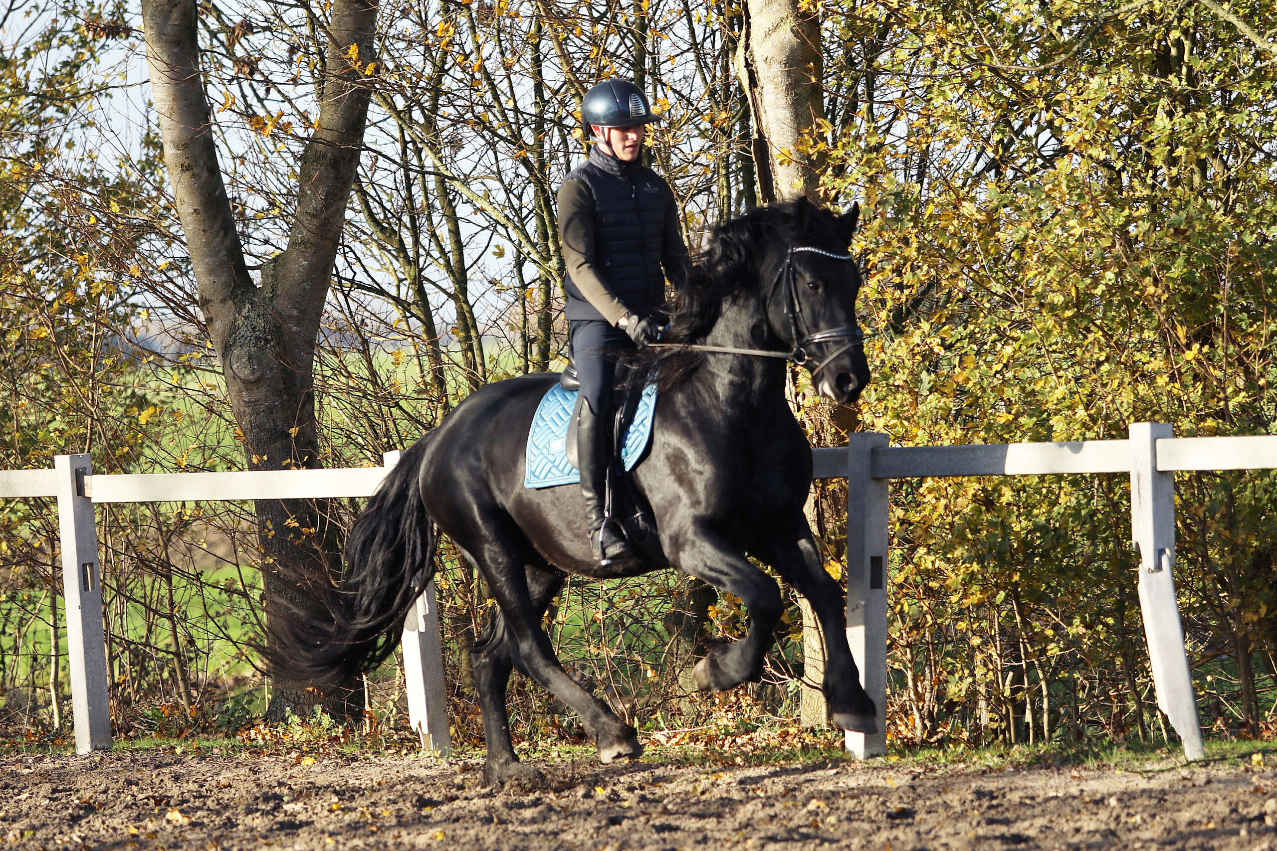 Pieter is een stoere, sterk gebouwde ruin van Topspeed Kaspar uit een Friese merrie van Hinne 427. Pieter is een vriendelijk paard in de omgang en met zijn barocke bouw een echte krachtpatser! Pieter kan goed bewegen en heeft drie goede gangen. In draf heeft hij veel lossigheid en hij beweegt met een goed achterbeengebruik. Pieter is correct gebouwd, heeft een fraai hoofdje en is droog op de benen. In het werk is Pieter eerlijk en heeft hij veel instelling. Hij wil graag werken en doet goed zijn best. We rijden hem onder het zadel en daarnaast wordt hij voor de kar gereden in enkel- en dubbelspan. Hij is goed verkeersmak.
